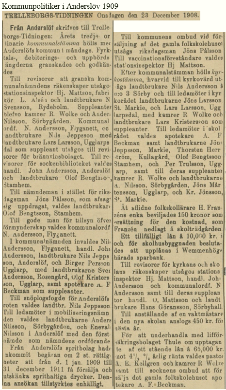 Tidningsurklipp Grönby