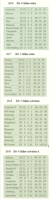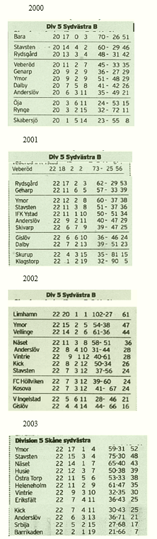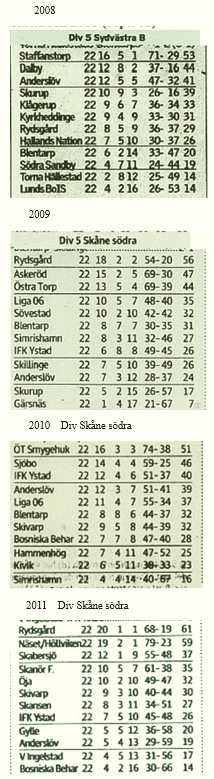 Serietabeller och laguppställningar 1981-2021