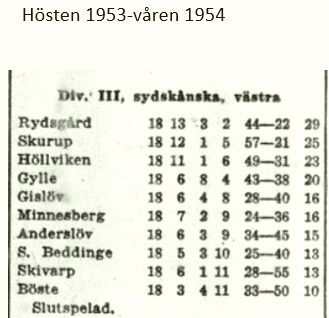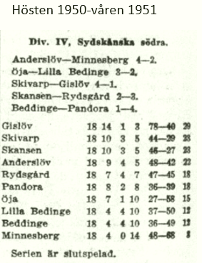 Serietabeller och laguppställningar 1949-1980